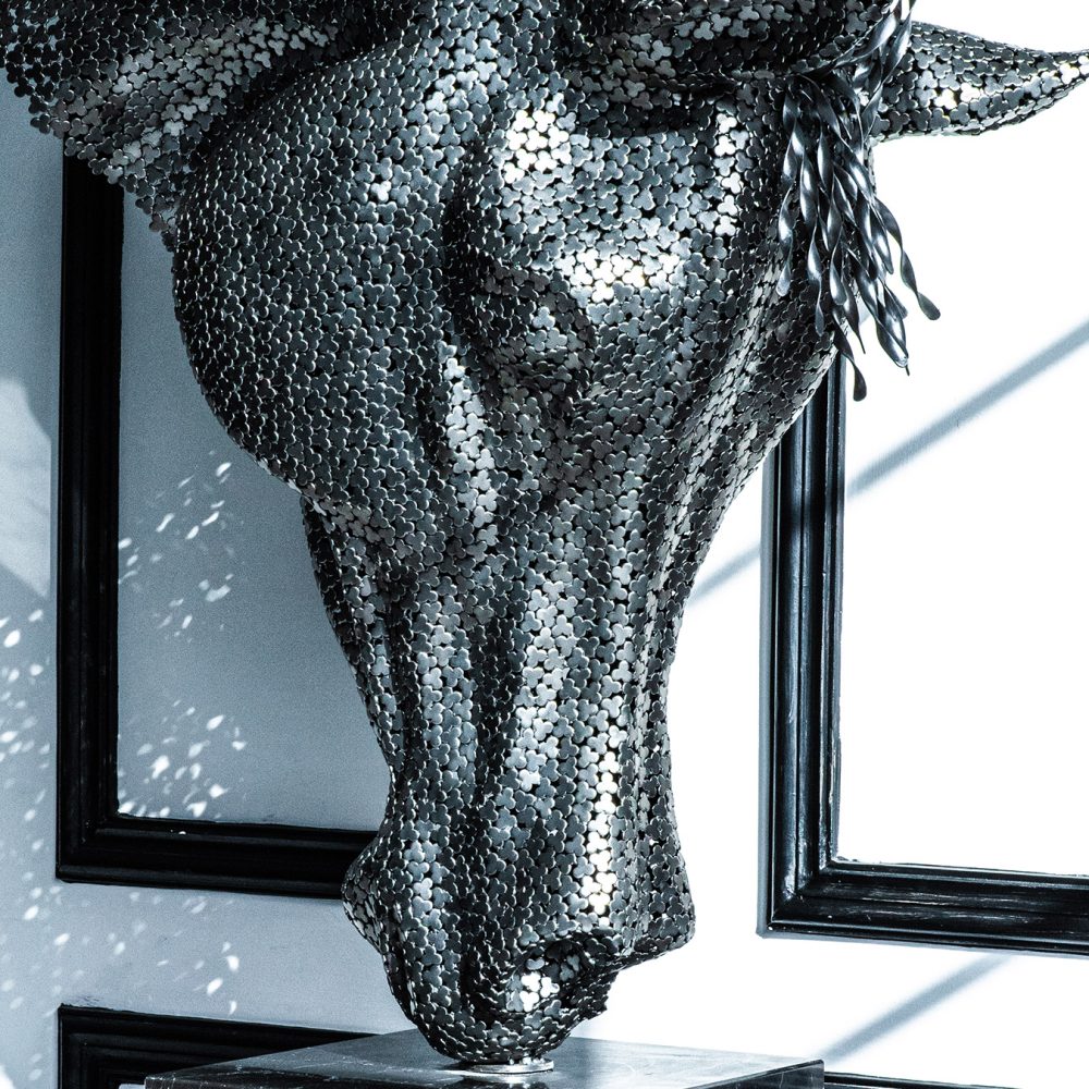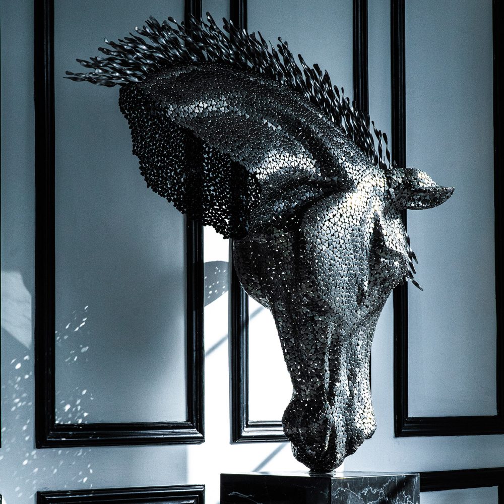 This beautiful handmade metal horse head statue is crafted in a modern fashion to catch eyes and add style and energy to any interior decor. Its intricate details and majestic presence evoke a feeling of grace, power, and elegance.