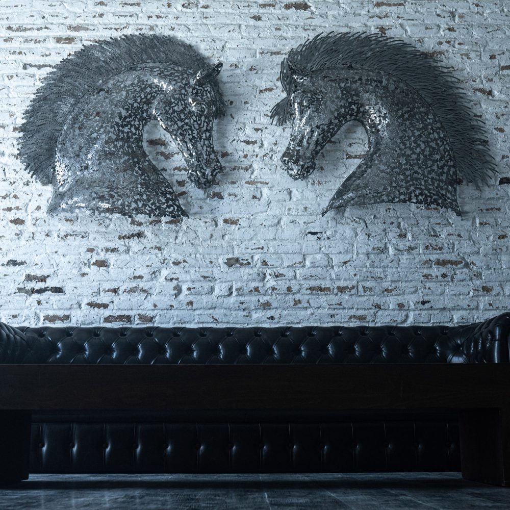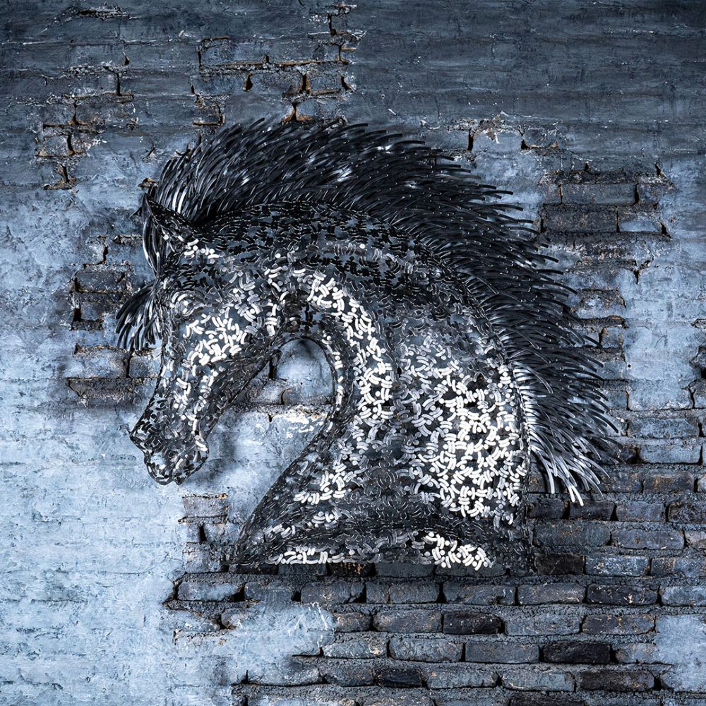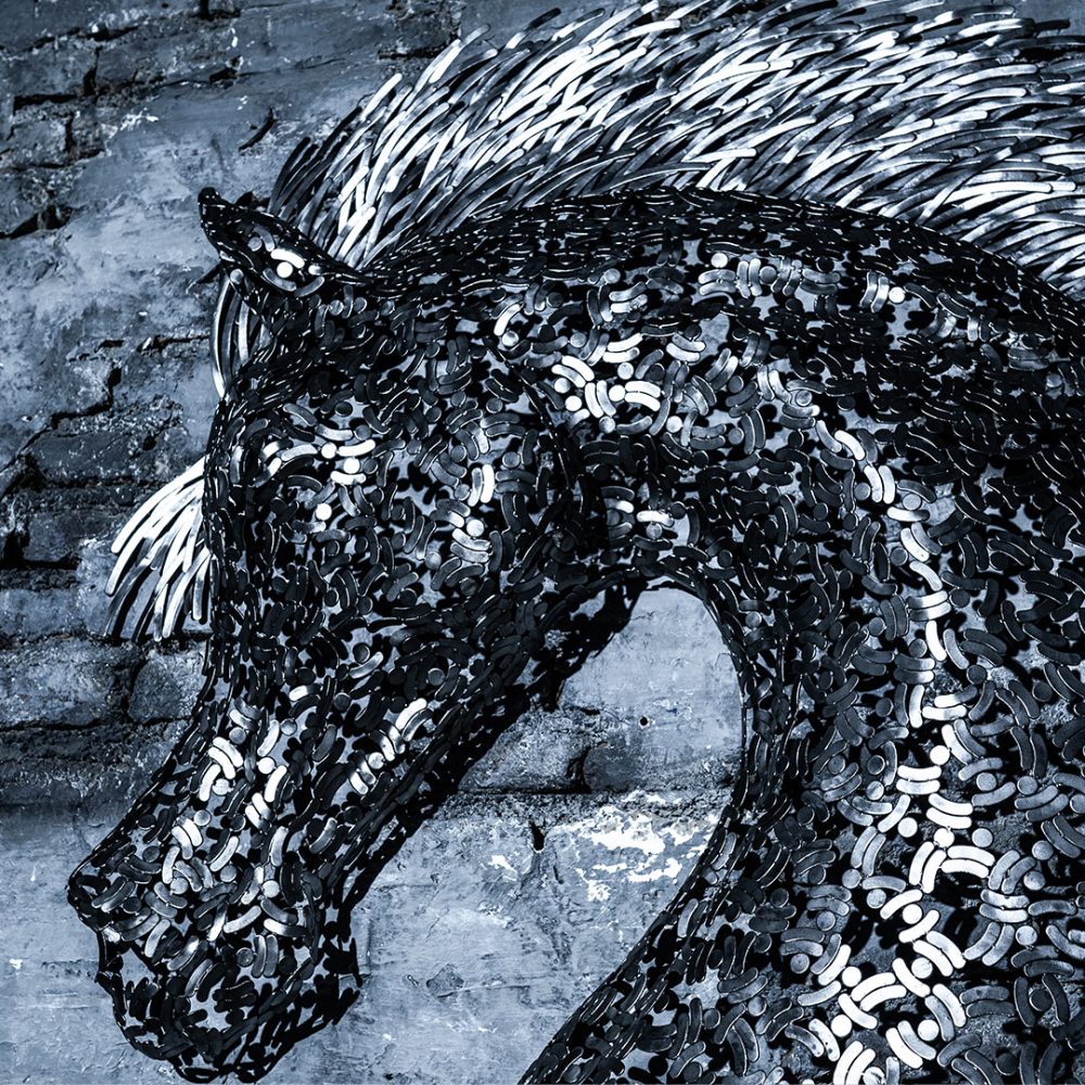 The intricate contours and carefully sculpted lines bring the horse’s features to life, showcasing its noble spirit and untamed beauty. The play of light and shadow on the metal surface adds depth and dimension, enhancing the sculpture’s visual impact.