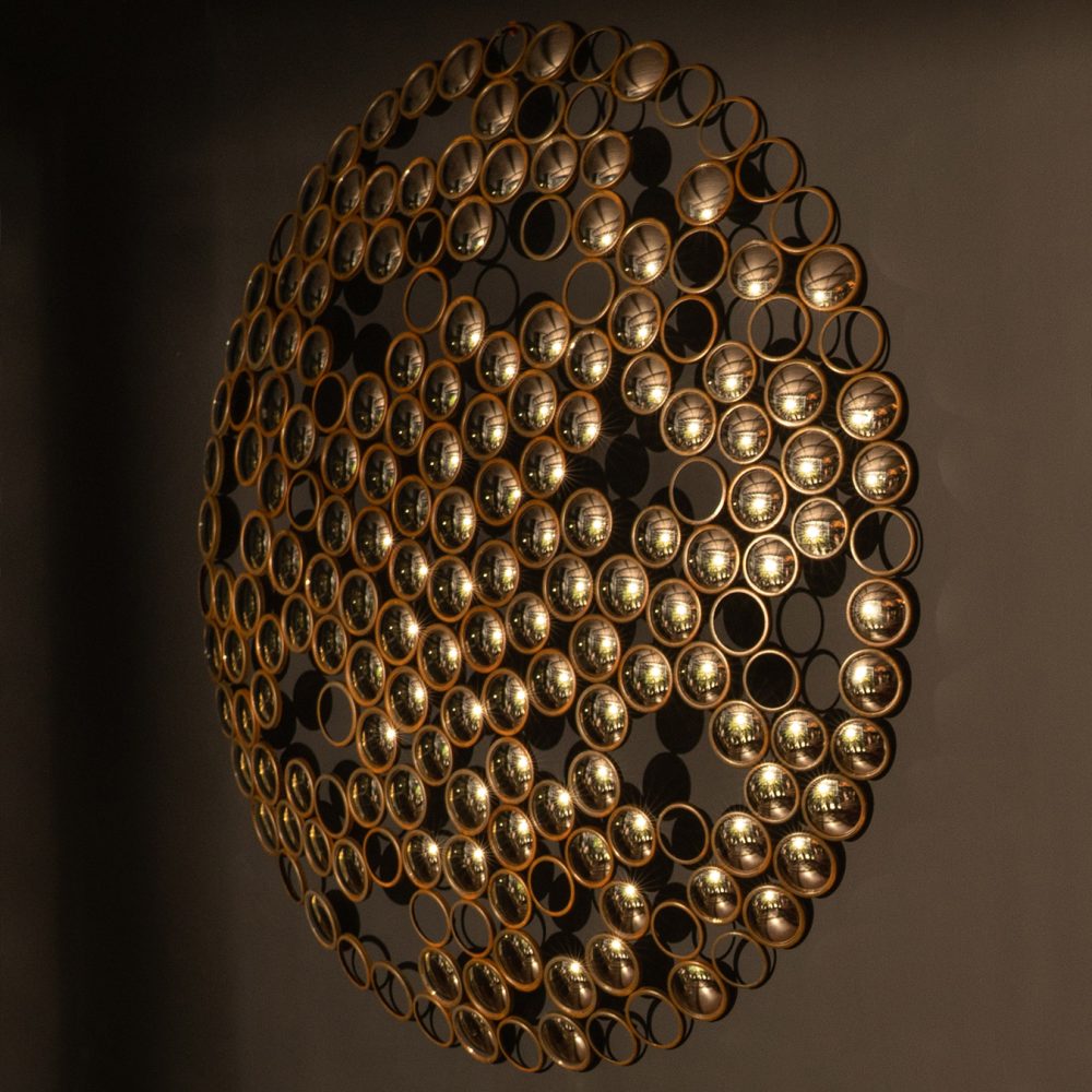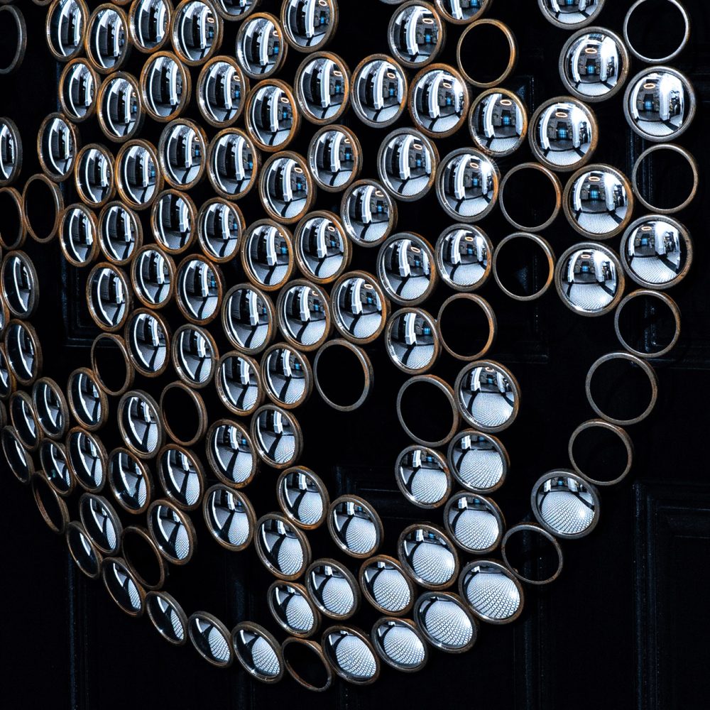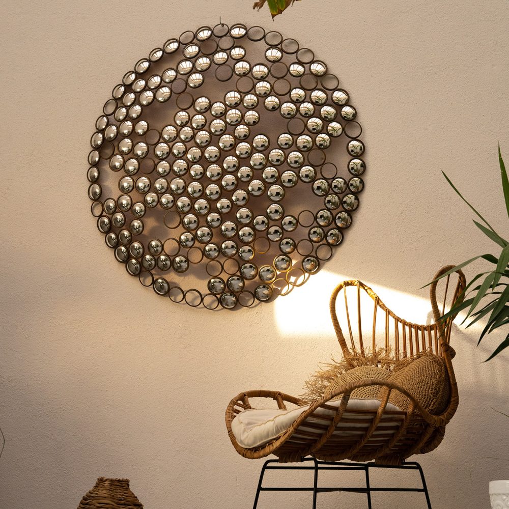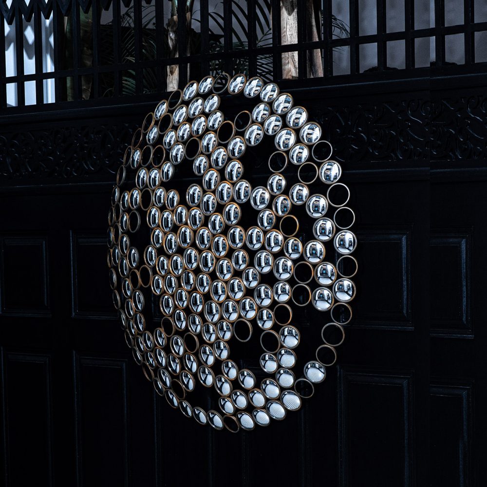 Reflection shield is a stunning and eye-catching piece that adds a touch of glamour and intrigue to any space. This decorative item features an arrangement of convex mirrors, each reflecting light and creating a mesmerizing display.