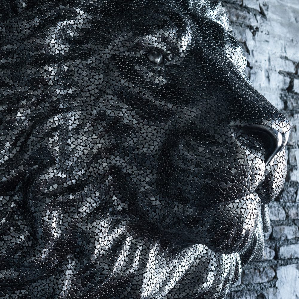 The lion head wall hanging sculpture is a stunning piece of art that can bring a sense of power, strength, and elegance to any space. This artwork is skillfully crafted by welding small pieces of metal. Its intricate details and bold design make it a captivating focal point that is sure to leave a lasting impression on anyone who enters the room.