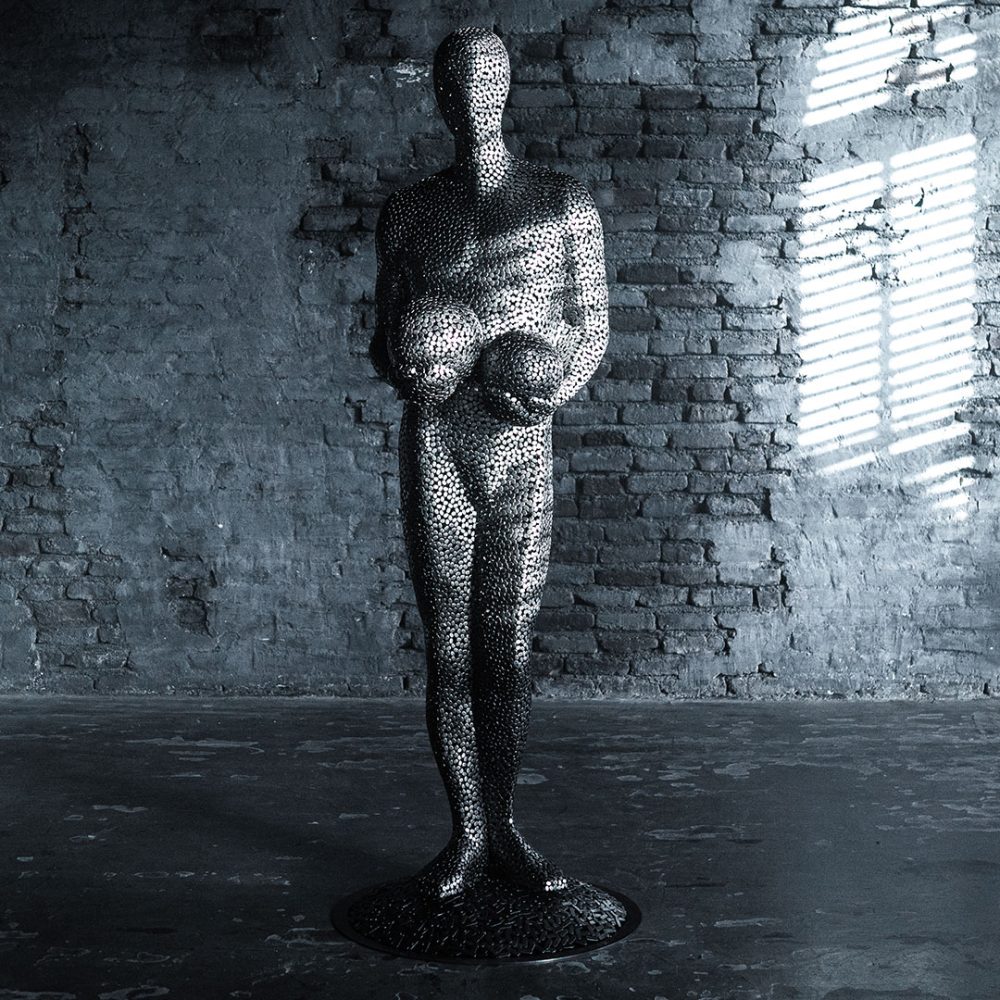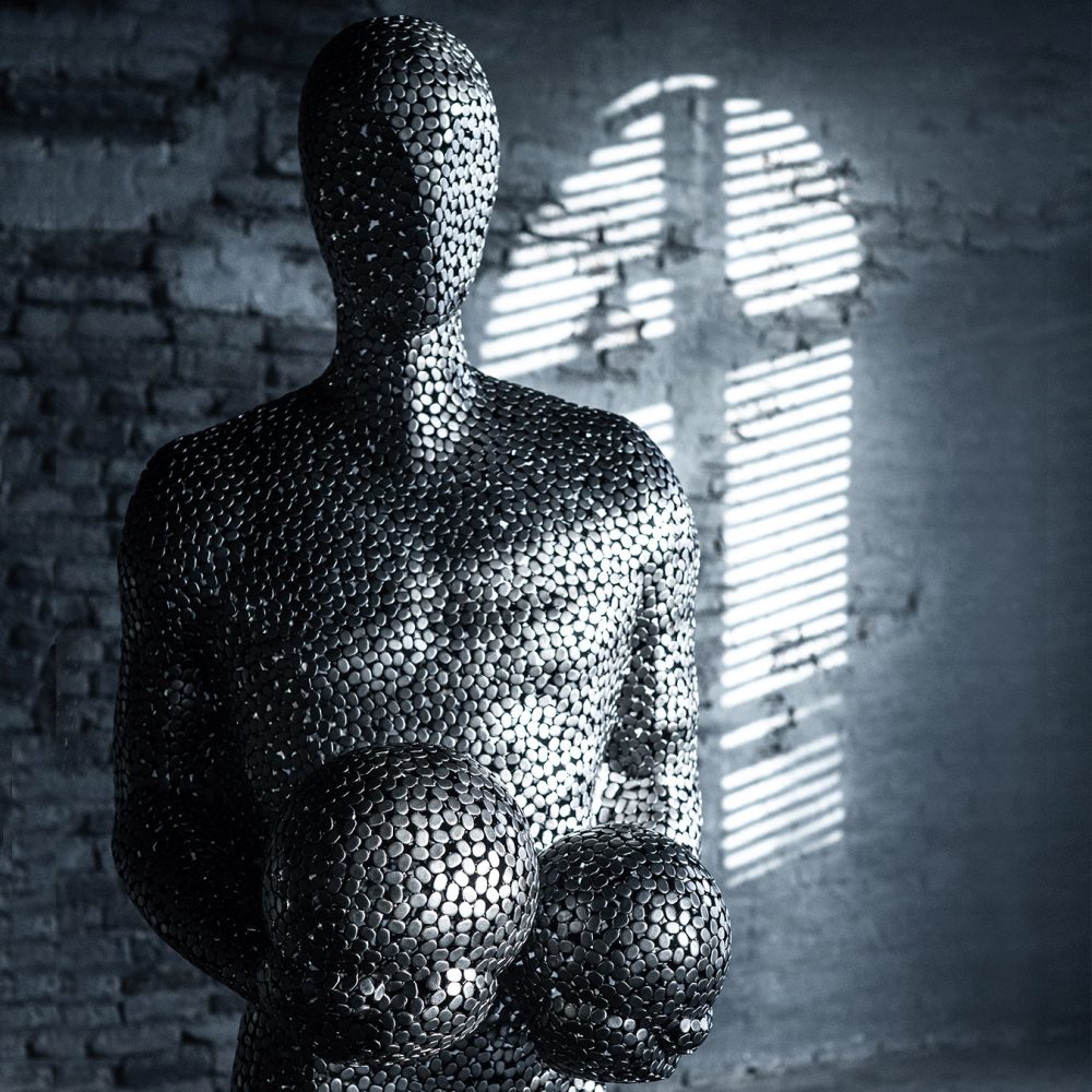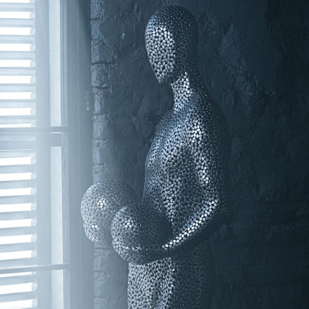 This magnificent sculpture is inspired by the mighty Jupiter god, holding two orbs that represent the moon and the sun, symbolizing the eternal dance between light and darkness, day and night.