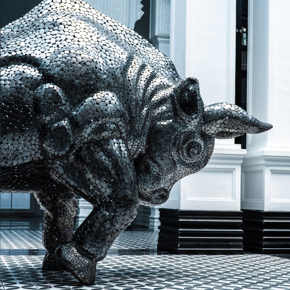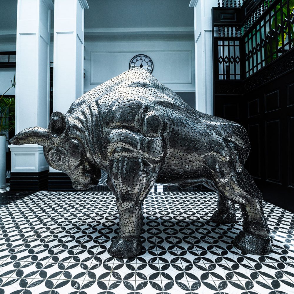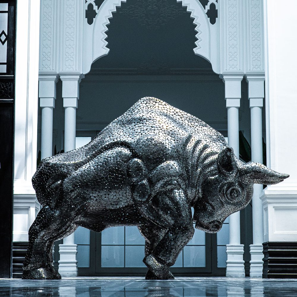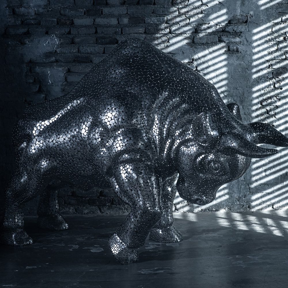 This metal life-size bull sculpture is a magnificent piece of art that can transform any space into a captivating and awe-inspiring environment. Its size and presence create a feeling of strength, power, and majesty, making it an exceptional addition to any interior or outdoor setting.