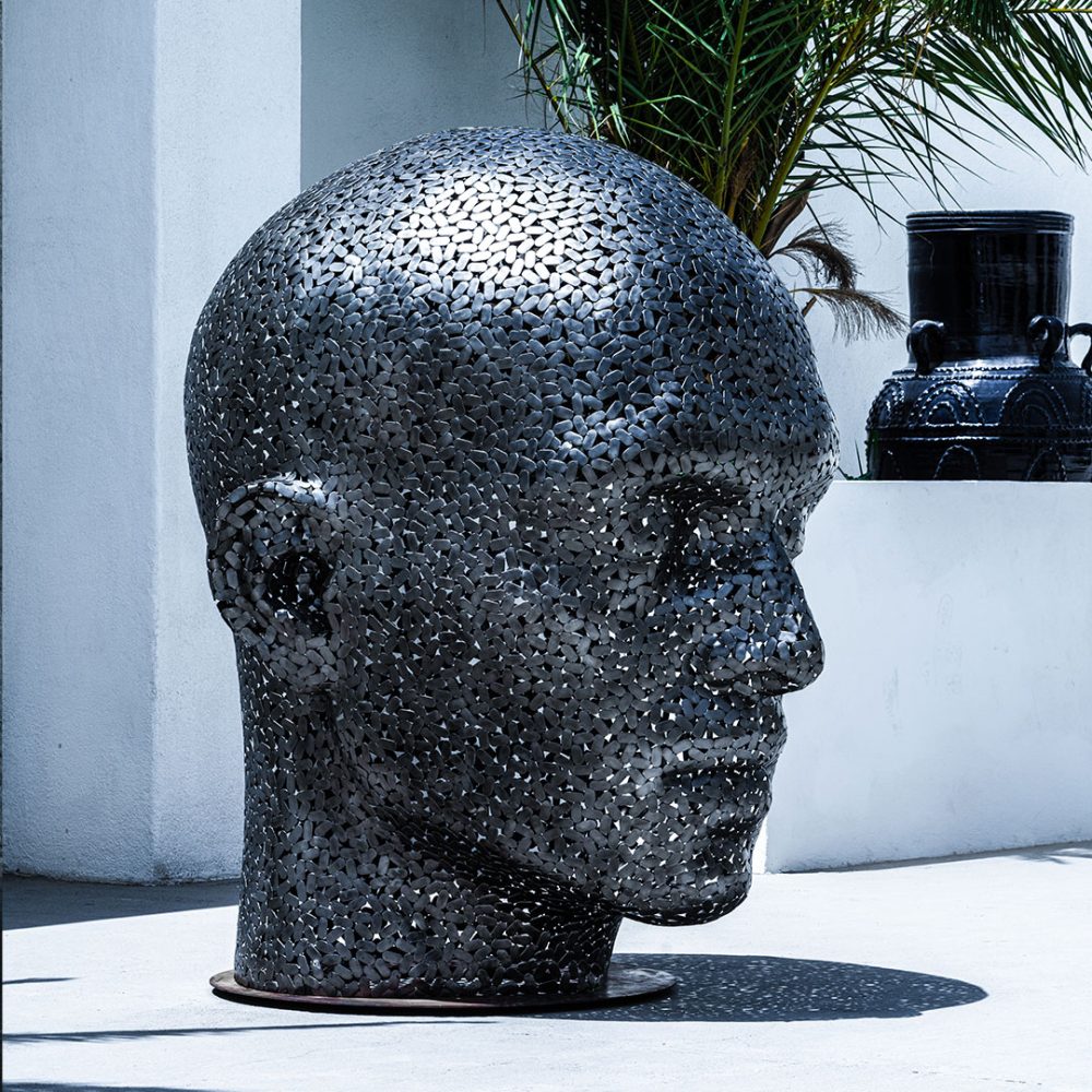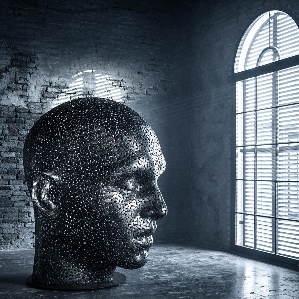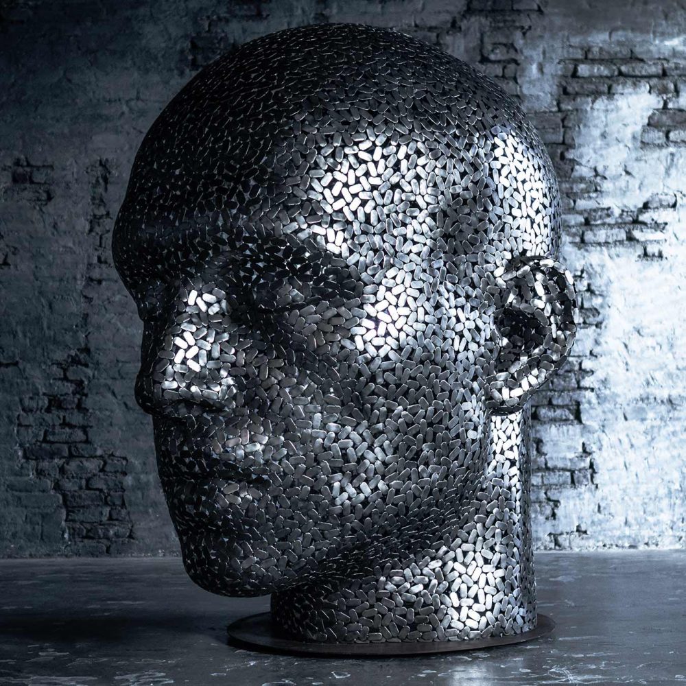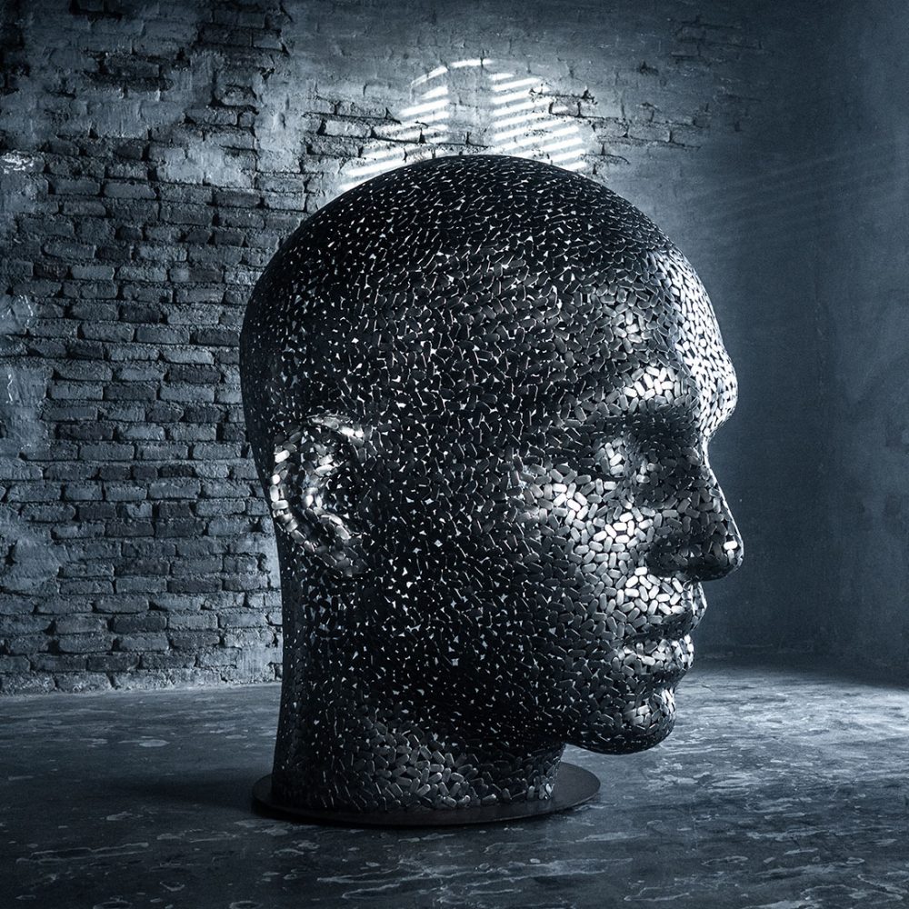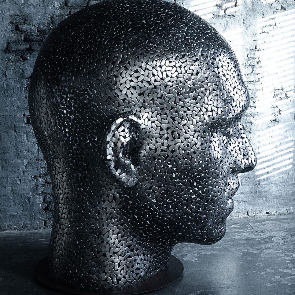 Thousands of small metal pieces are welded together to create a striking and thought-provoking artwork that exudes a sense of calmness and serenity.