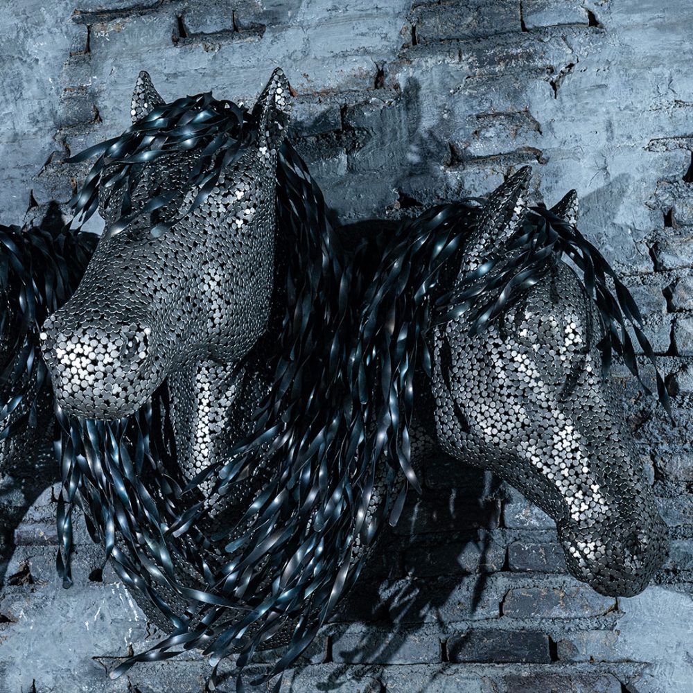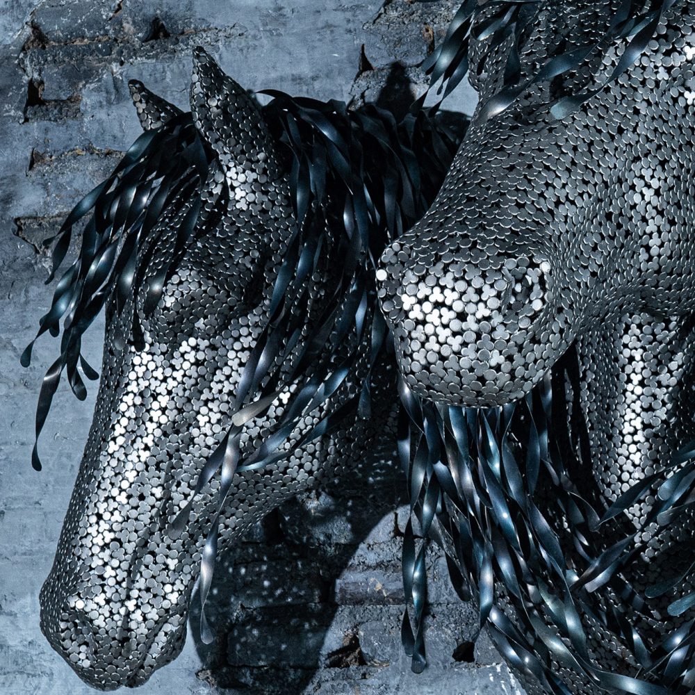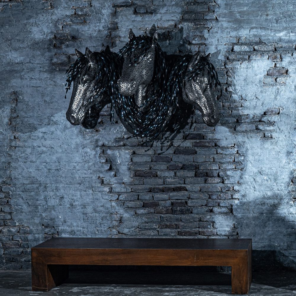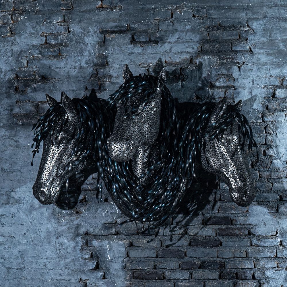 Its three-dimensional design creates a sense of depth and movement, making it an eye-catching addition to any wall. The presence of the horses’ heads evokes a feeling of power and freedom, creating a captivating atmosphere that draws in viewers and sparks conversations.