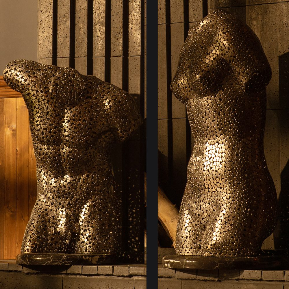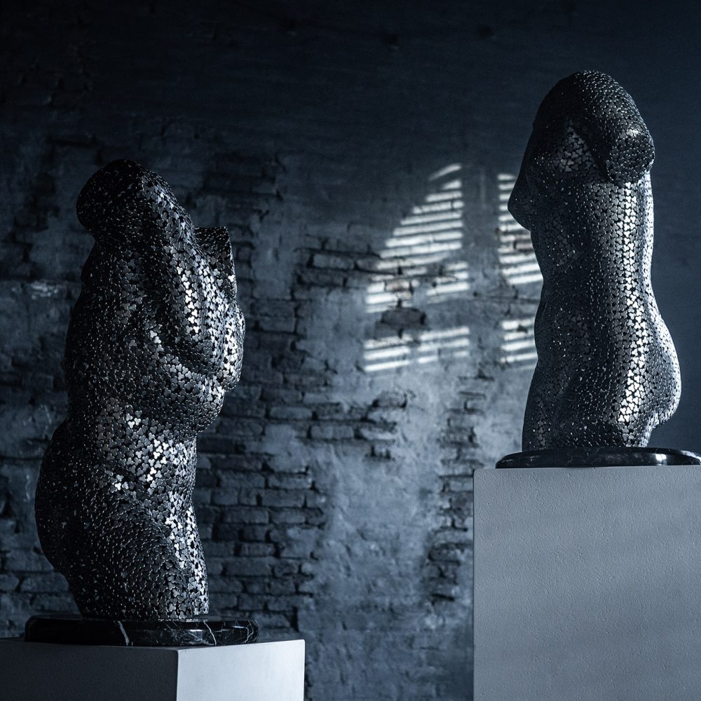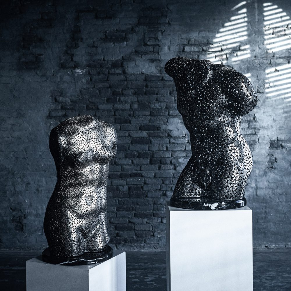 These two beautiful works are made from the original statues of Venus and Hercules by welding metal pieces together.