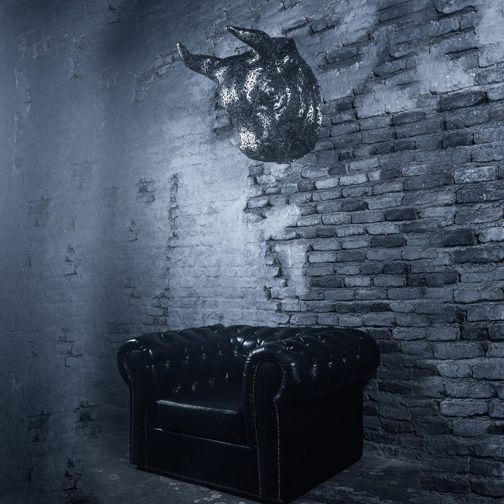 The bull’s head sculpture is a bold and captivating piece of art that can transform any space into a powerful and energetic environment.